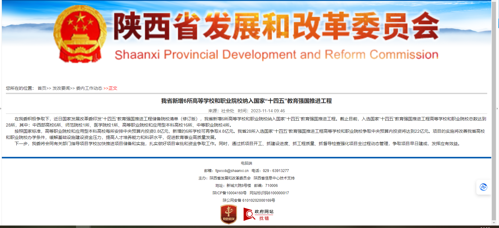 近日,根據(jù)陜西省發(fā)改委官網(wǎng)消息顯示,陜西省新增6所高等學校和職業(yè)院校納入國家“十四五”教育強國推進工程。截止目前,陜西省入選國家“十四五”教育強國推進工程高等學校和職業(yè)院??倲?shù)達到28所,其中:中西部高校6所、師范院校1所、醫(yī)學院校1所、高等職業(yè)院校和應用型本科高校16所、中等職業(yè)院校4所。