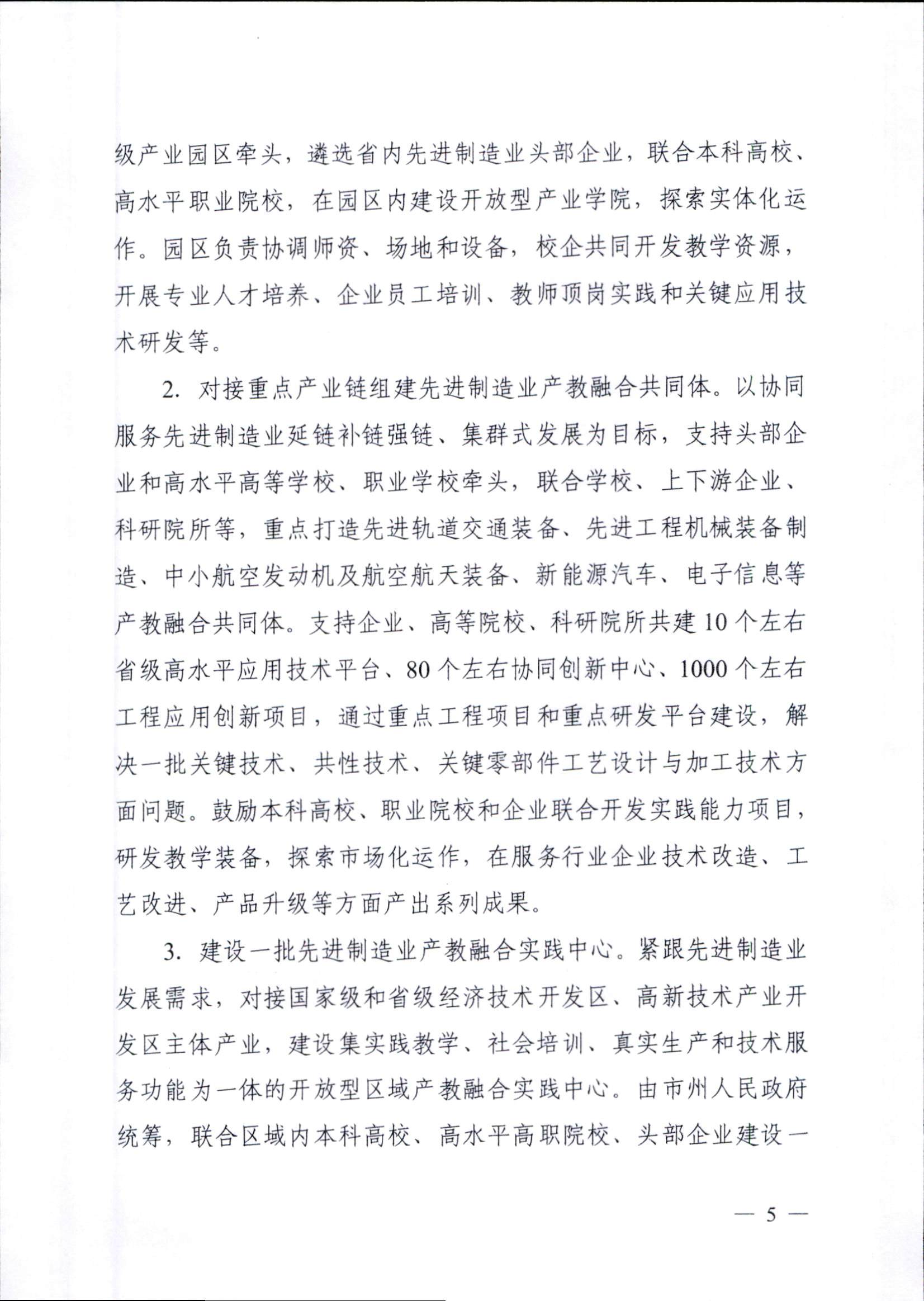 為深入學(xué)習(xí)貫徹黨的二十大精神,落實(shí)《關(guān)于深化現(xiàn)代職業(yè)教育體系建設(shè)改革的意見》,進(jìn)一步深化職業(yè)教育產(chǎn)教融合,助力國家重要先進(jìn)制造業(yè)高地建設(shè),依據(jù)《中華人民共和國職業(yè)教育法》,教育部和湖南省人民政府特制定本實(shí)施方案。其中重要任務(wù)中提及:2.校企共建強(qiáng)技賦能的高水平專業(yè)集群。重點(diǎn)圍繞工程機(jī)械、軌道交通裝備、中小航空發(fā)動機(jī)及航空航天裝備、電子信息、新能源、新材料等先進(jìn)制造業(yè)領(lǐng)域,支持高職“雙高計(jì)劃”建設(shè)單位,建設(shè)一批與制造業(yè)主體功能區(qū)戰(zhàn)略對接的高水平專業(yè)集群,建設(shè)10個(gè)左右專業(yè)群教學(xué)資源庫、20個(gè)左右虛擬仿真實(shí)訓(xùn)基地、100門左右精品在線開放課程和100本左右新形態(tài)教材,推進(jìn)優(yōu)質(zhì)資源共享,形成“院校集群+功能板塊”“專業(yè)集群+產(chǎn)業(yè)鏈”的產(chǎn)教融合新生態(tài)。
