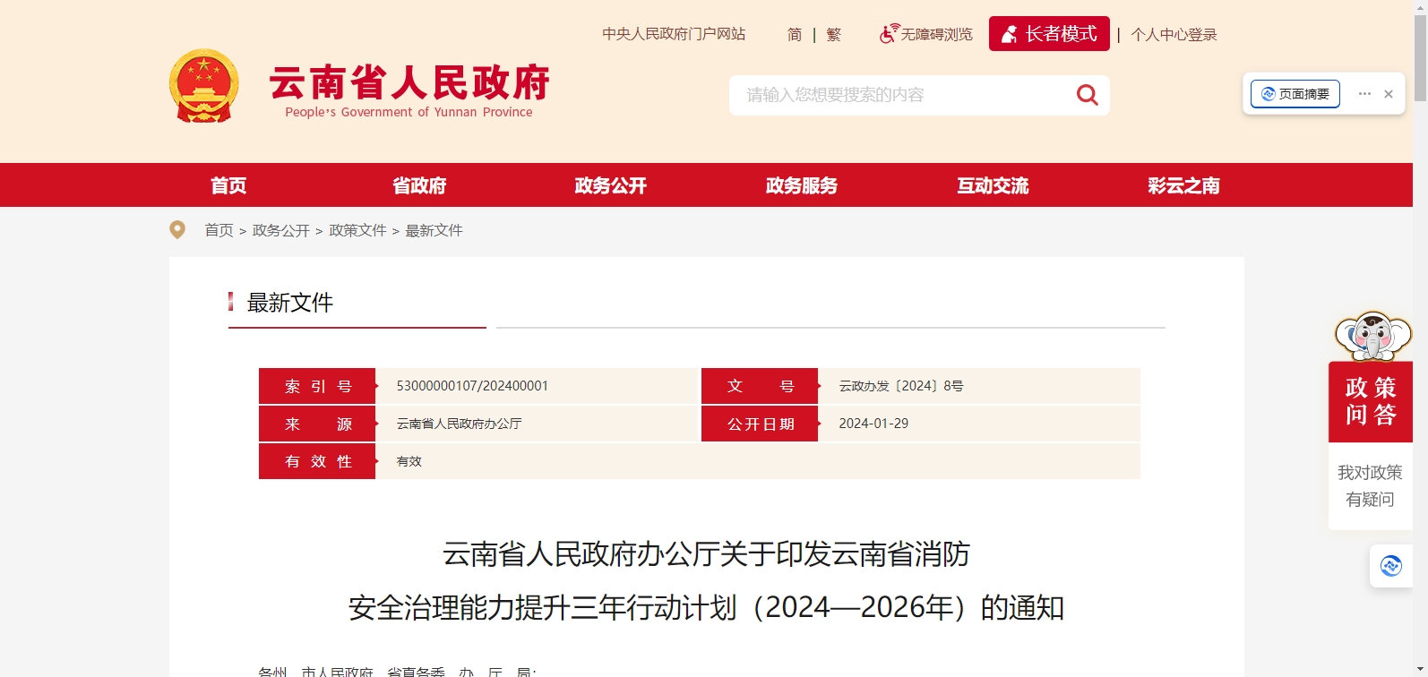近日,《云南省消防安全治理能力提升三年行動計劃(2024—2026年)》印發(fā),提出要支持省內(nèi)高校、職業(yè)院校加強“校消”合作,開設(shè)消防管理及救援技術(shù)等相關(guān)學歷教育,開辦消防救援學院等。