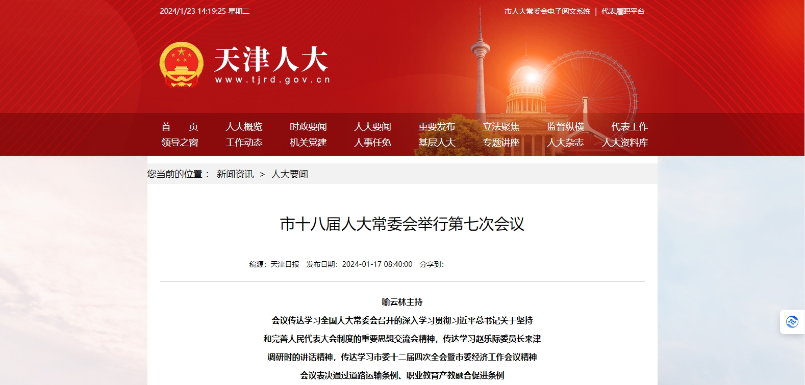 日前,天津市十八屆人大常委會第七次會議表決通過了《天津市職業(yè)教育產(chǎn)教融合促進條例》(下稱《條例》),這是全國首部有關職業(yè)教育產(chǎn)教融合的地方性法規(guī),自2024年3月1日起施行?!稐l例》的制定和施行,對于......