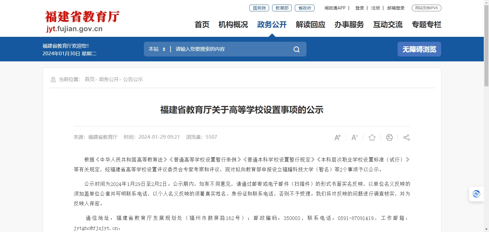 2024年1月29日,福建省教育廳官方網(wǎng)站發(fā)布《福建省教育廳關于高等學校設置事項的公示》。公示中稱,根據(jù)《中華人民共和國高等教育法》《普通高等學校設置暫行條例》《普通本科學校設置暫行規(guī)定》《本科層次職......