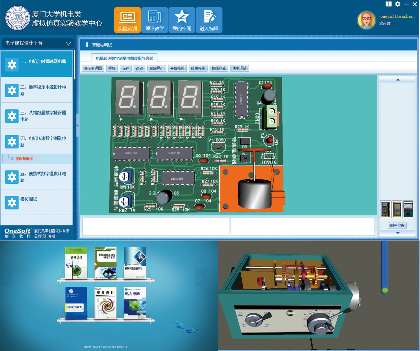 【項目概述】廈門大學機電類虛擬仿真實驗教學中心以培養(yǎng)學生綜合設計和創(chuàng)新能力為出發(fā)點 , 依托虛擬現(xiàn)實、多媒體、人機交互、數(shù)據(jù)庫和網(wǎng)絡通訊等技術,本著"虛實結合、優(yōu)勢互補″的建設思路,建設的可遠程控制的共享資源,運用鳳凰創(chuàng)壹虛擬現(xiàn)實三維互動教學平臺和鳳凰創(chuàng)壹虛擬現(xiàn)實三維互動引擎軟件開發(fā),實現(xiàn)廈門大學學校網(wǎng)站和教學平臺無縫對接,為廈門大學機電類學生提供網(wǎng)上實驗教學場所、運行環(huán)境、支撐平臺、數(shù)據(jù)中心。