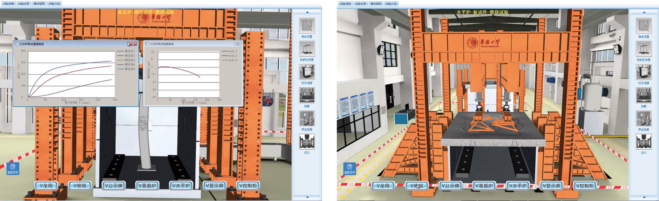 【項目概述】模擬火災、地震的實驗儀器價值昂貴,一般無法開放給本科生使用。通過虛擬仿真實驗教學項目的展開,對于面向減災方向的本科教育會有極大的幫助,通過具有物理屬性的三維互動VR模型,學生可以了解實驗設備結構原理、不同參數(shù)下試驗的真實結果,通過大量的數(shù)學模型實時計算出各種結果。