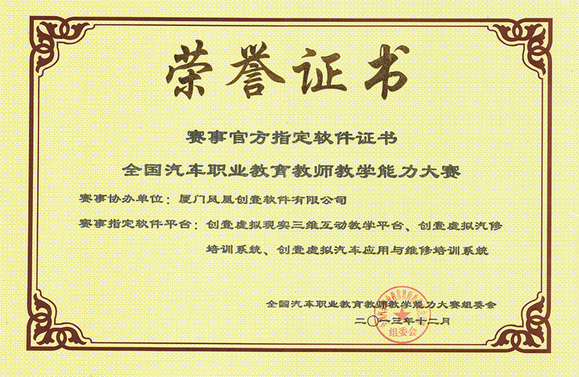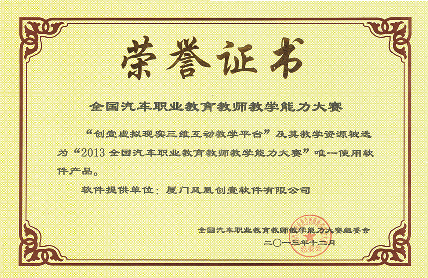 2013年汽車大賽官方指定軟件證書