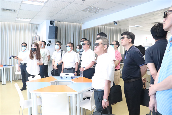 在聽取林博士的主題宣講后,專題培訓(xùn)班學(xué)員們分組輪流體驗了鳳凰創(chuàng)壹元宇宙體驗中心中VR/AR/MR等前沿技術(shù)應(yīng)用場景,如MR教學(xué)系統(tǒng)、桌面沉浸式系統(tǒng)、數(shù)字孿生虛實融合智能實驗臺、數(shù)控i8多軸智能訓(xùn)練機、裸眼3D系統(tǒng)、VR沉浸式系統(tǒng)、AR增強現(xiàn)實系統(tǒng)。