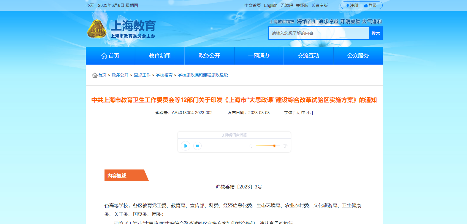 現(xiàn)將《上海市“大思政課”建設(shè)綜合改革試驗區(qū)實施方案》印發(fā)給你們,請認(rèn)真貫徹執(zhí)行。