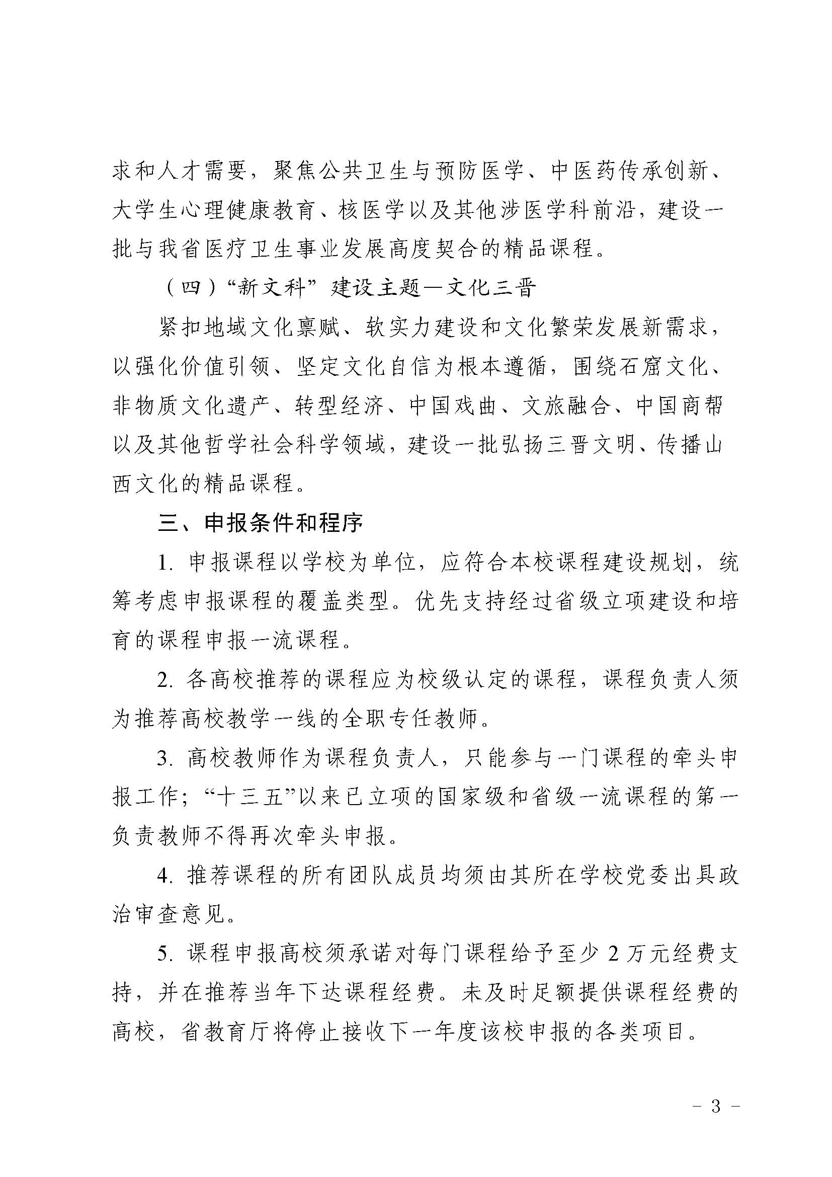山西省教育廳1月26日在其官網(wǎng)發(fā)布關(guān)于開展 2024 年山西省一流本科課程認(rèn)定工作的通知,重點(diǎn)支持“新工科”建設(shè)主題—?jiǎng)?chuàng)新三晉,“新農(nóng)科”建設(shè)主題—生態(tài)三晉,“新醫(yī)科”建設(shè)主題—健康三晉等領(lǐng)域,課程申報(bào)高校須承諾對(duì)每門課程給予至少2 萬元經(jīng)費(fèi)支持,并在推薦當(dāng)年下達(dá)課程經(jīng)費(fèi)。未及時(shí)足額提供課程經(jīng)費(fèi)的高校,省教育廳將停止接收下一年度該校申報(bào)的各類項(xiàng)目。