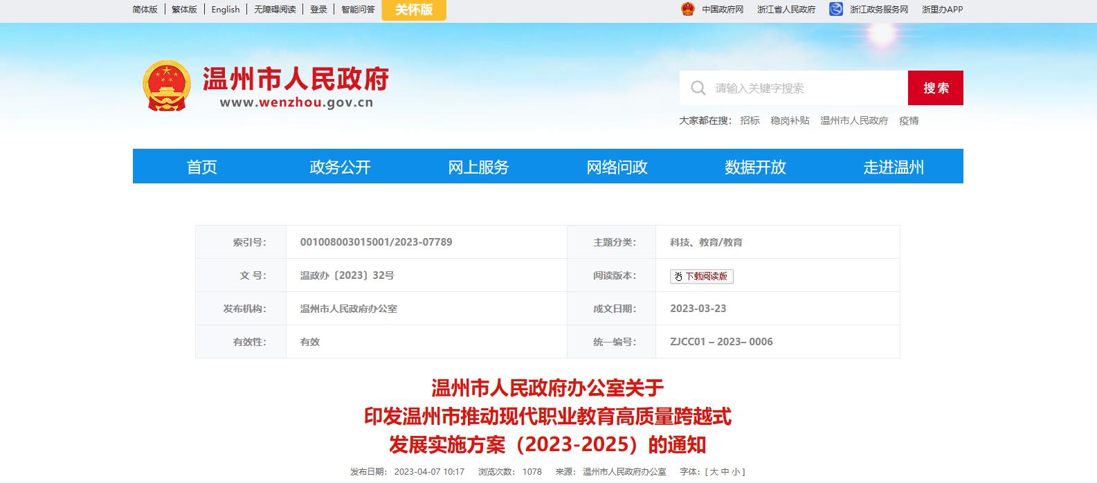 建設職教高地!溫州出臺推動現(xiàn)代職業(yè)教育高質(zhì)量跨越式發(fā)展“二十條措施”