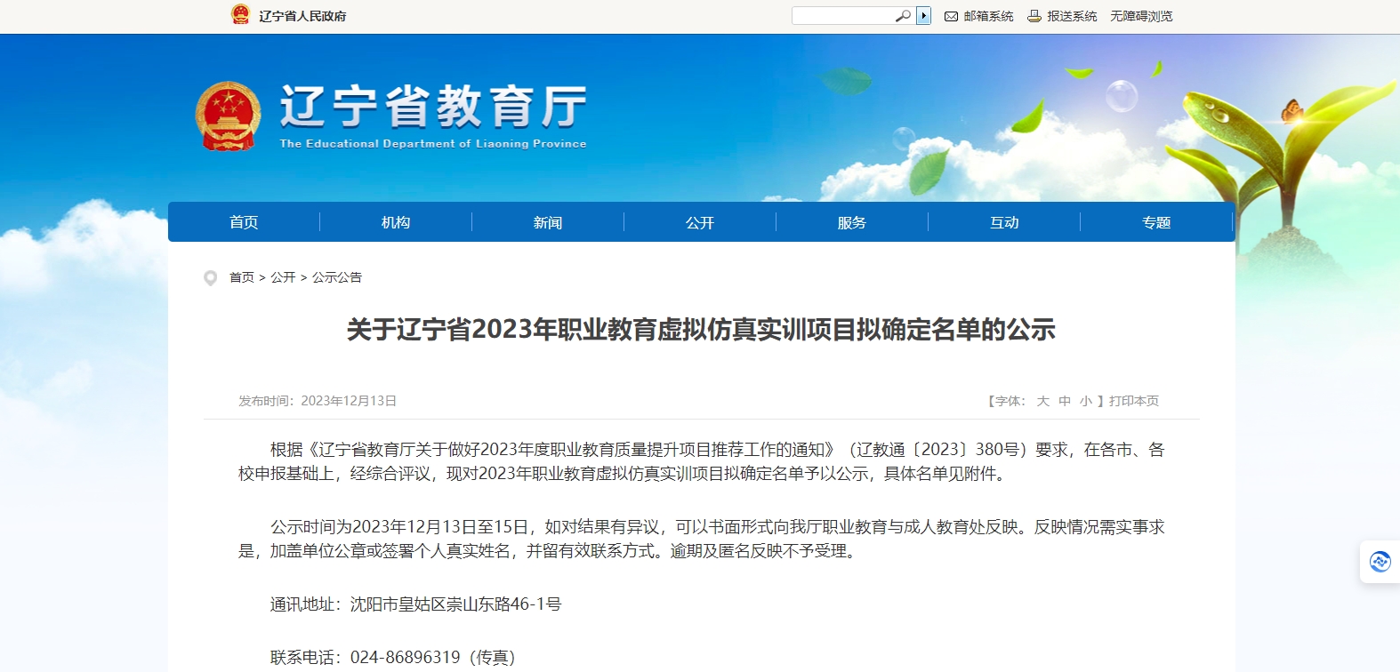 遼寧省公示2023年職業(yè)教育虛擬仿真實訓(xùn)項目擬確定名單