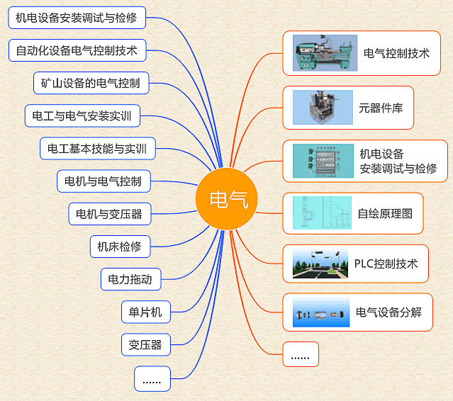 基本涵蓋了電力拖動、常用機床電氣線路的檢修、機電設備控制線路的設計安裝與調試、電工基本技能與實訓、三菱PLC與傳感器、電子部件制作、繼電控制線路的安裝與維修、電機與變壓器、單片機、家用電動電熱器具、電氣設備安裝與運行維護(電力工程)、照明線路的安裝與維修、電動機繼電器控制線路的安裝與維修所需教學實訓仿真資源。
